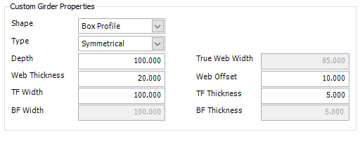 Select the profile shape of the Custom Girder. The options are I profile or Box Profile. |