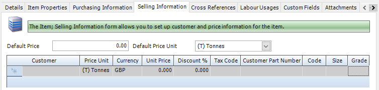 Where a price is not specified for a customer, values from the Default Price and Price Unit fields are used. |