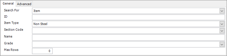 items or non-steel items (or leave the Item Type field blank to search