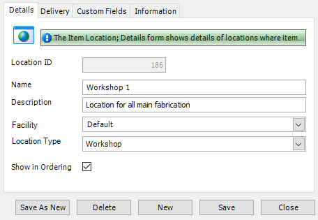 Type in address details for the location. The information that you provide is used if you have goods delivered to or sent from this location.
