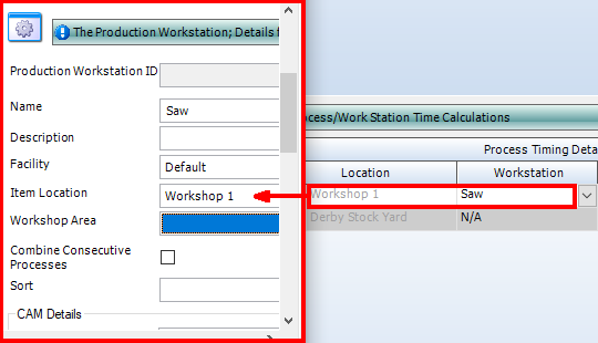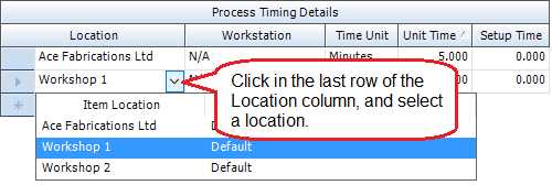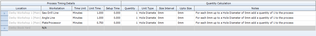 The other columns are automatically populated (see below) and the Process/Workstation Time Calculations grid is populated with one of the following: