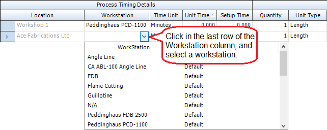 Click the down-arrow in the Workstation column and select a workstation as shown below.
