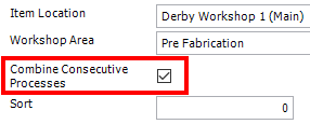 The physical machine that is represented by this workstation record may be able to perform more than one task, for example, cutting and drilling. The Combine Consecutive Processes check box can be used when a machine can perform more than one task, such as cutting and drilling, in this scenario when you move the material through Production, the material will be moved to the next process after the process this Workstation can perform.