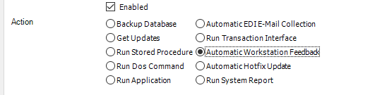 You need to set up an automated task to regularly check for feedback from the CNC machine. This is done by creating a new task in System> Automated Tasks and selecting the operation Automatic Workstation Feedback. Make sure this record is saved. For more information see About Automated Tasks.