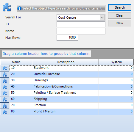Use this form to administer the library of cost centres. All records are searchable using Grid Options.