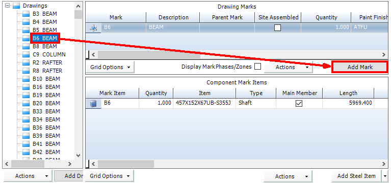 The mark is added to the list for the selected drawing.