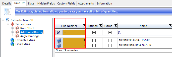 Line numbering can be used to sequentially number each line added to an Estimate, either manually or automatically. The number default can be set using the settings in Enquiry and Estimate Options or chosen on an independent basis depending on the Estimate.