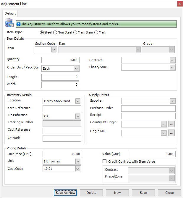 The Adjustment Line screen is displayed.