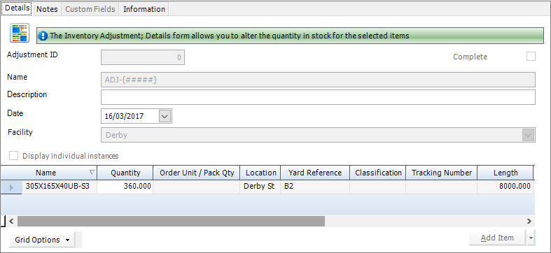 You are returned to the Inventory Adjustment