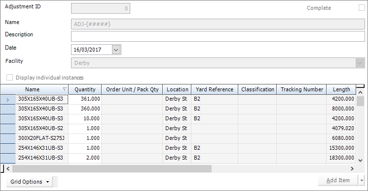 for the items to be adjusted.
