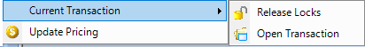 Current Transaction…OpenTransaction – For Locked Inventory items, this option opens the Inventory Transaction document relating to the selected line.