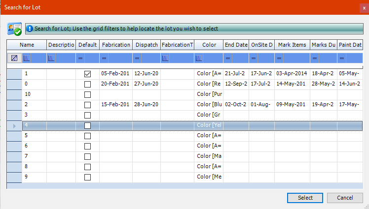 You can also use the Binoculars icon to explore the lots in more detail. This will open the Search for Lot form where all information related to each lot can be seen. This form cannot be edited.