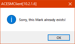 2. Specify a name for the Mark. This is a required field. If the name entered is already in use, an error message will appear to identify that there cannot be replication of the same Mark number or name on more than one record.