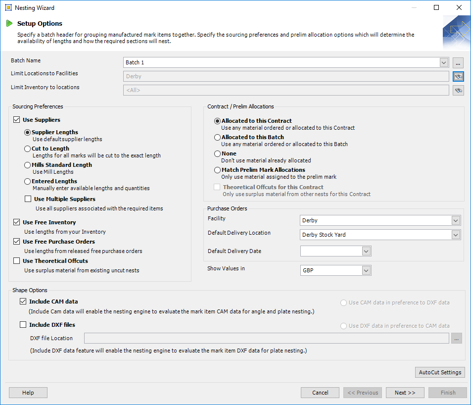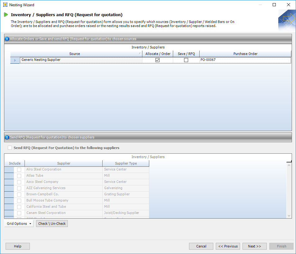 For full details, see Nesting Wizard - Inventory, Suppliers and RFQ.