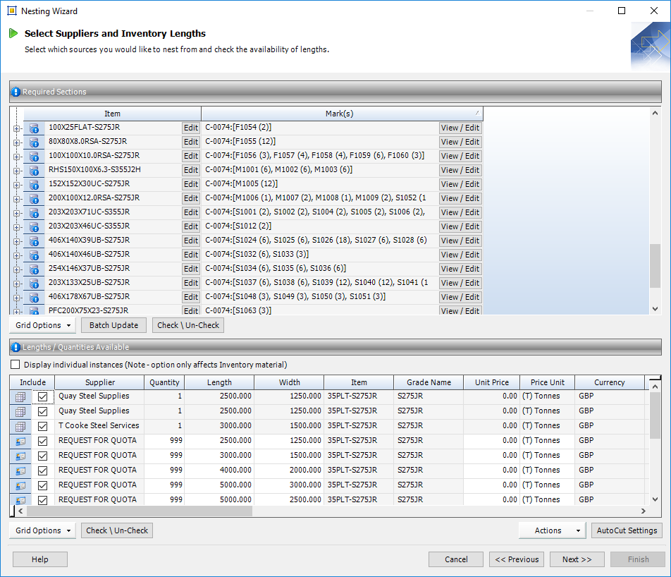 For full details, see Nesting Wizard - Select Suppliers and Inventory Lengths.